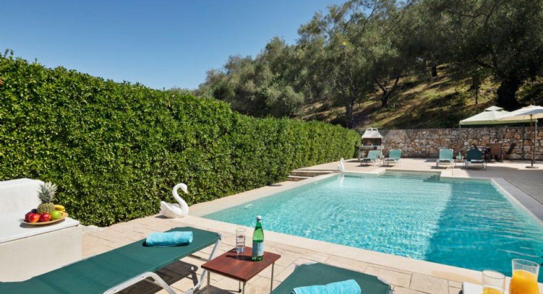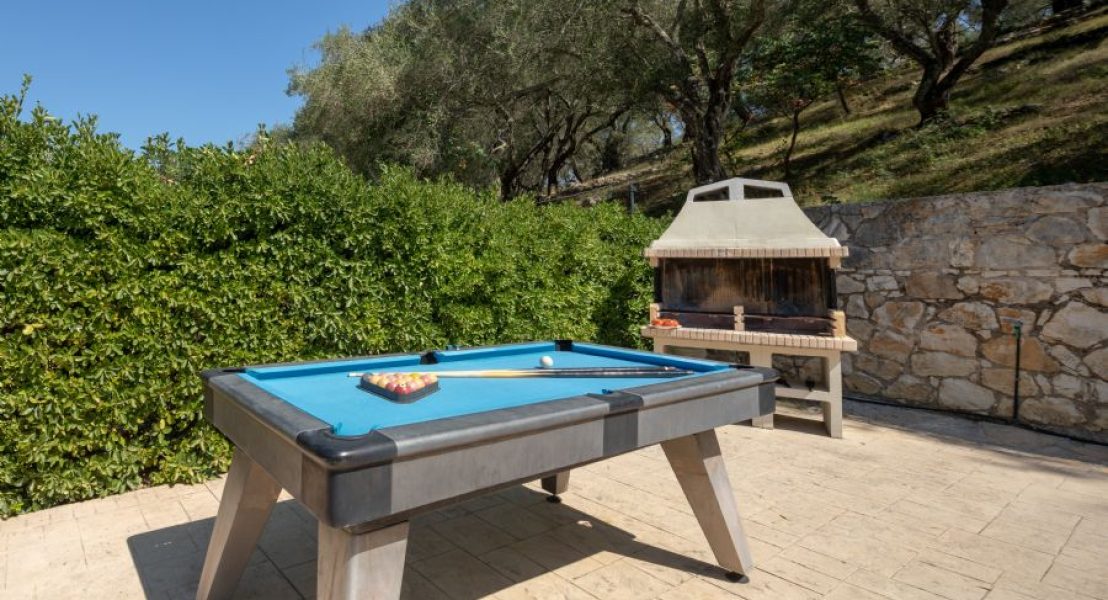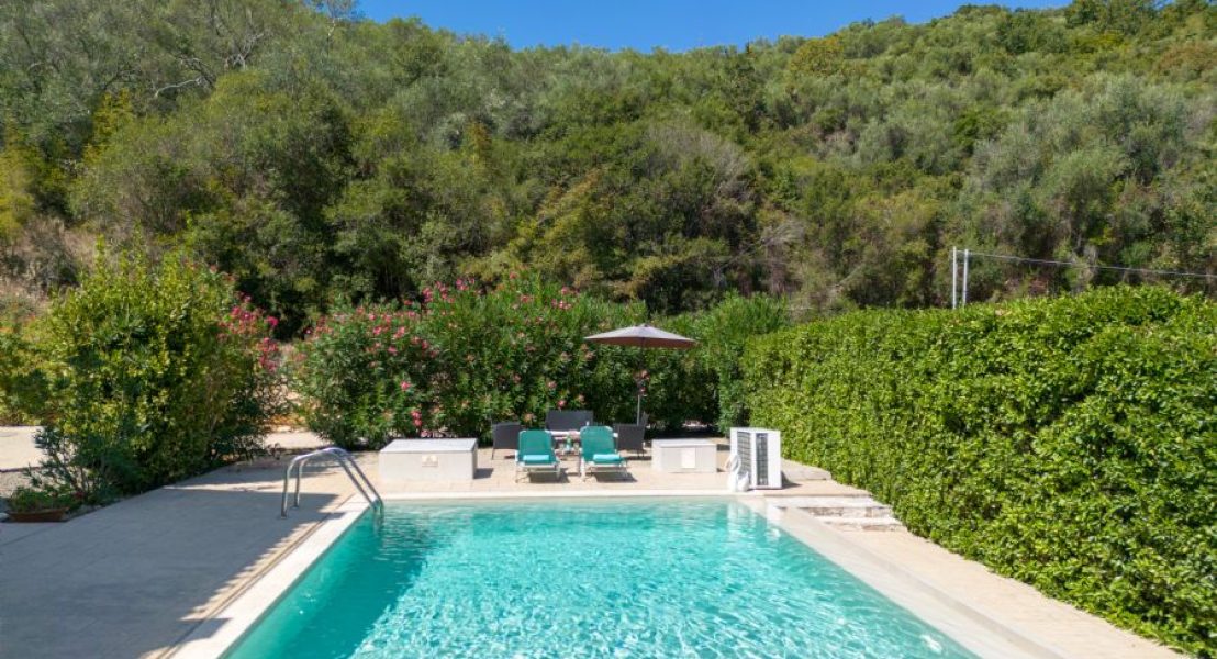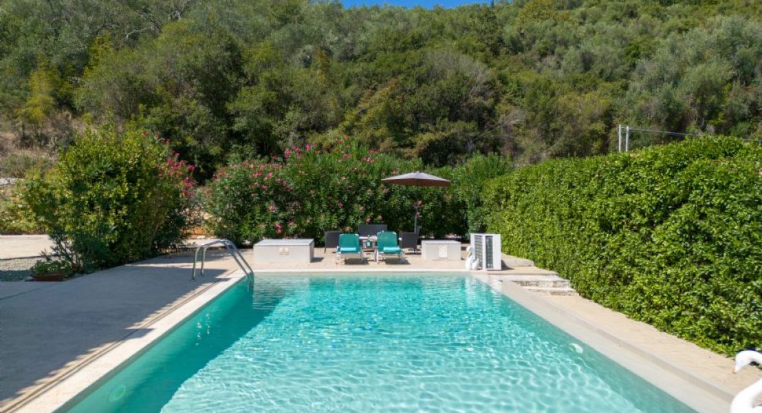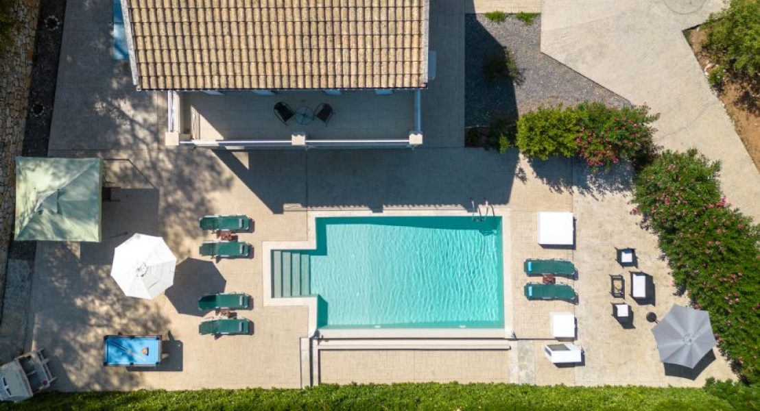 Privatni bazen (8 x 5 m), koji se može grejati po zahtevu tokom hladnih meseci, dobija sunce veći deo dana i smešten je ispred vile. Okružen je prostranim terasama sa suncobranima i ležaljkama. Pristup bazenu je moguć rimskim stepenicama ili merdevinama.