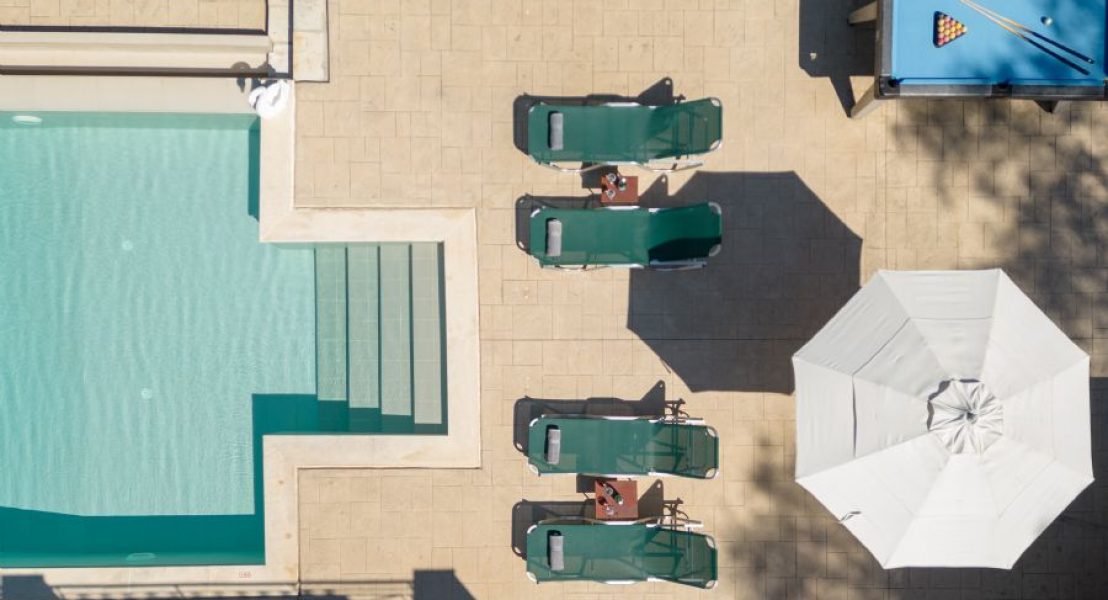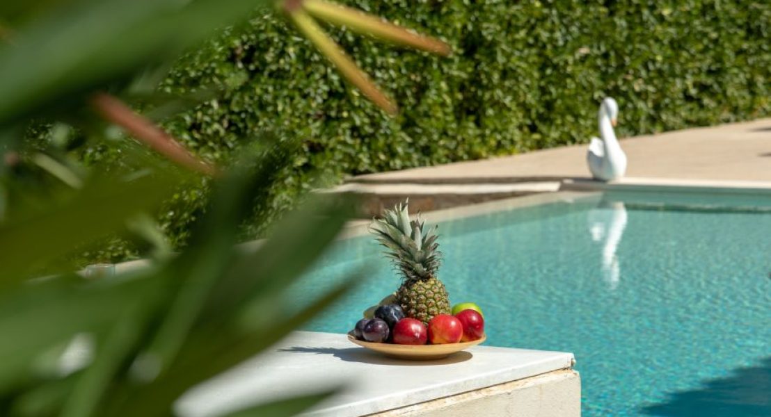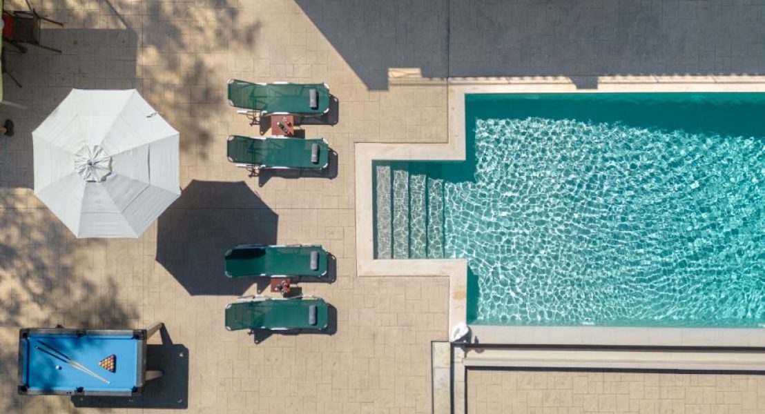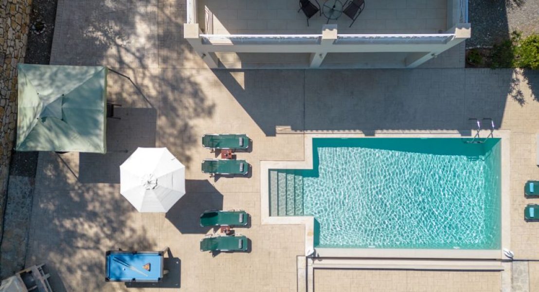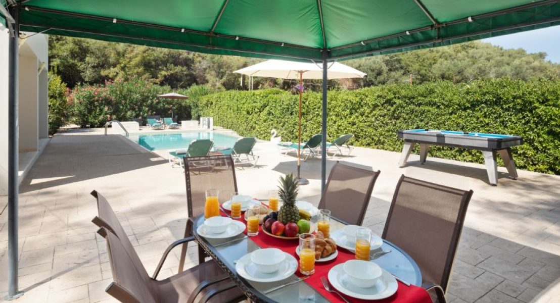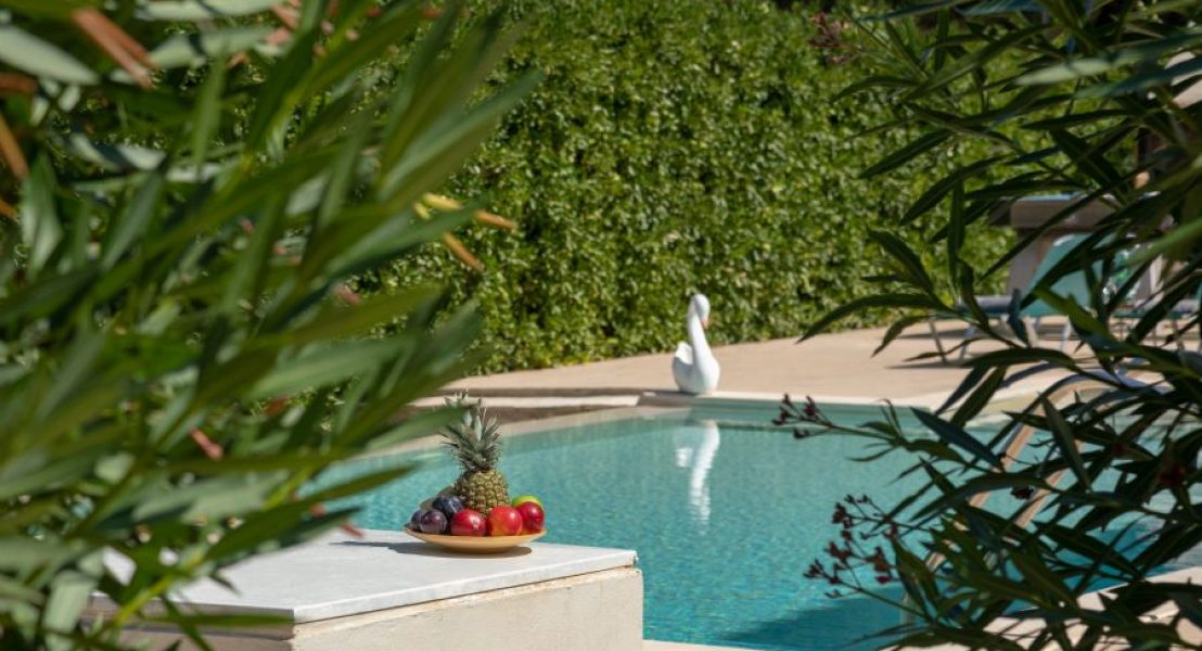 Privatni bazen (8 x 5 m), koji se može grejati po zahtevu tokom hladnih meseci, dobija sunce veći deo dana i smešten je ispred vile. Okružen je prostranim terasama sa suncobranima i ležaljkama. Pristup bazenu je moguć rimskim stepenicama ili merdevinama.